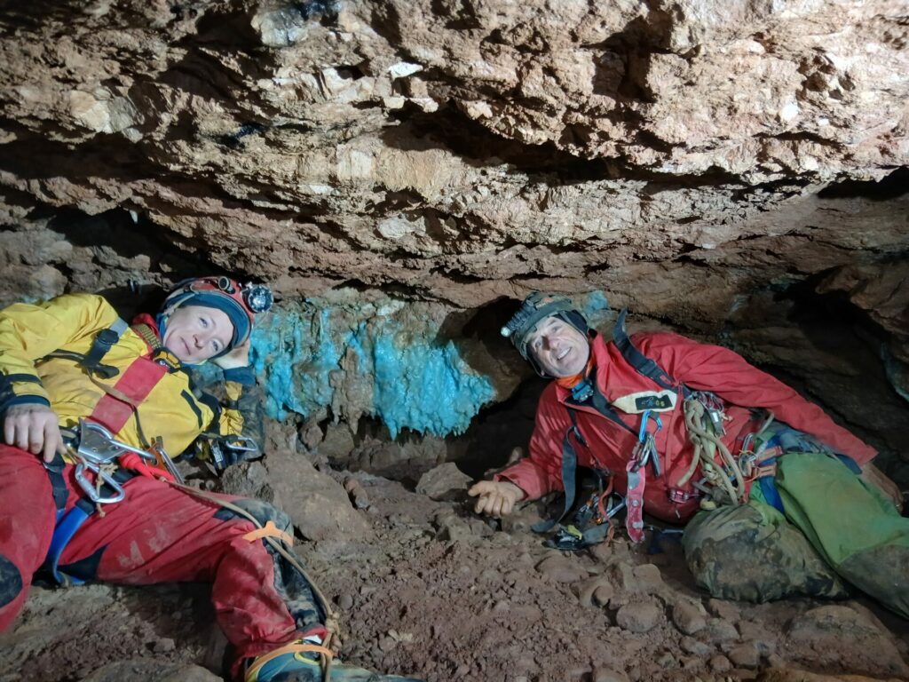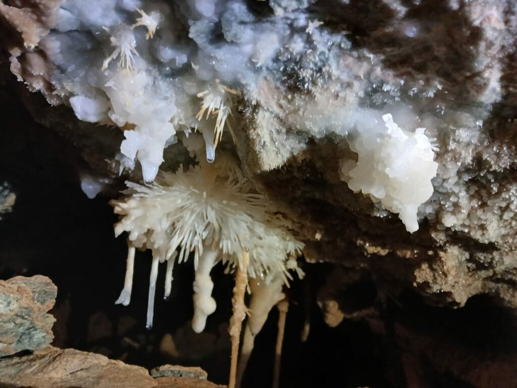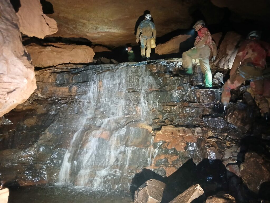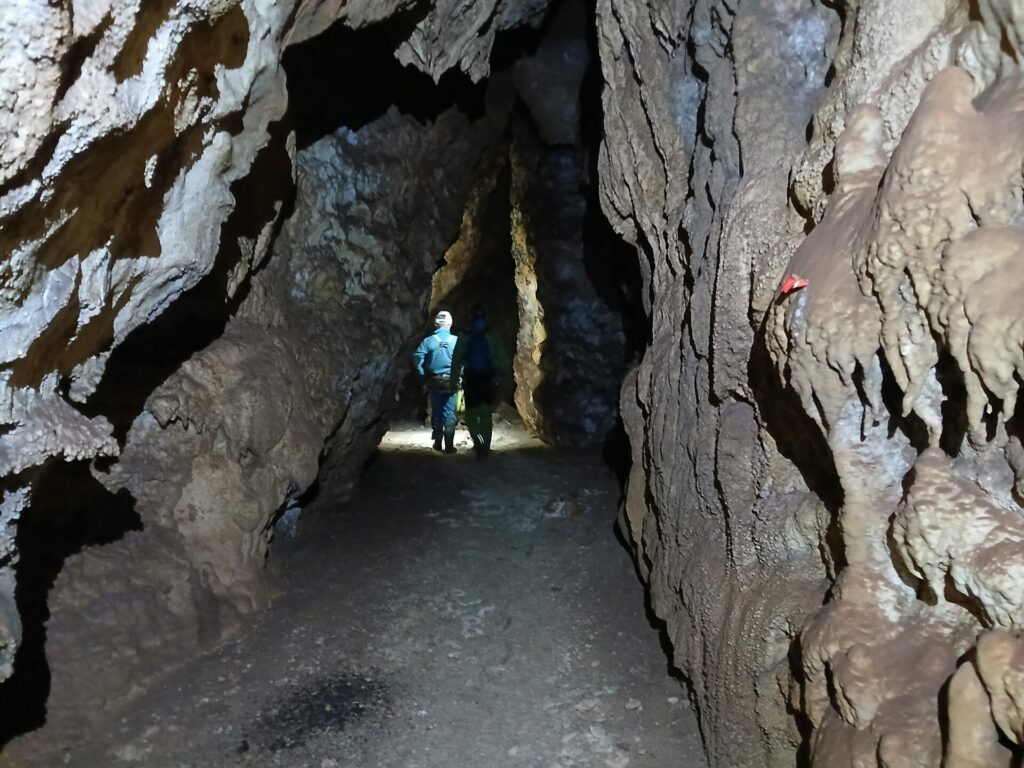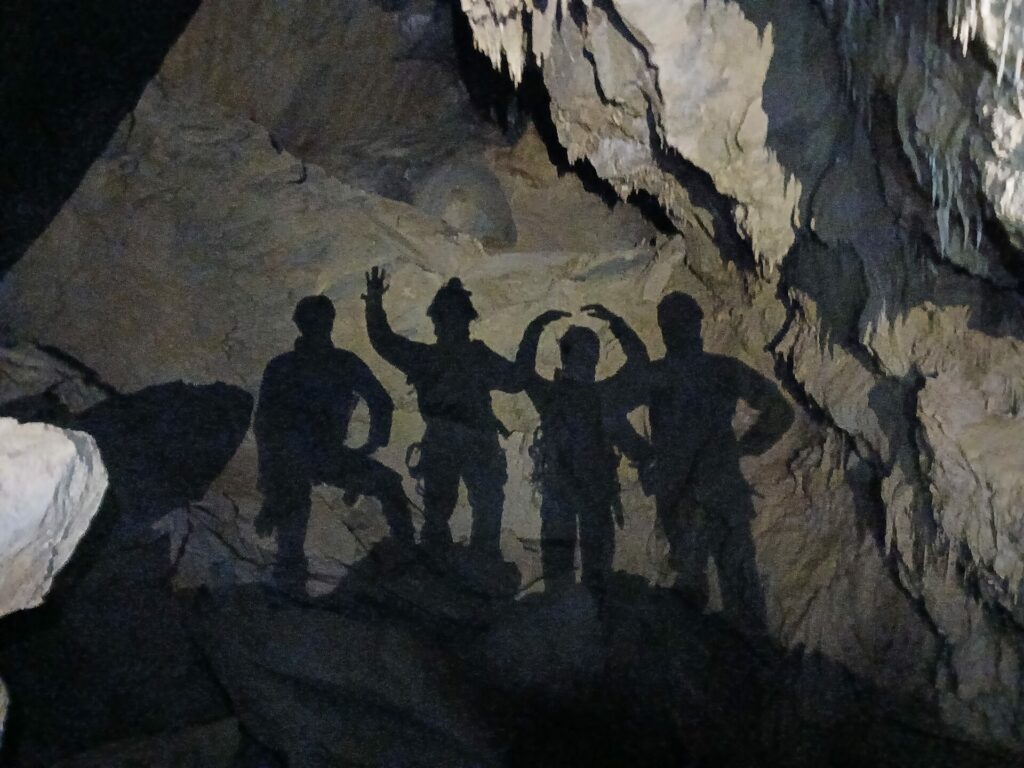 Alexis ouvre la marche, après 10 min, nous sommes au bord « du trou », un orifice étroit et vertical entre des blocs et c’est parti, le même spéléo équipe l’entrée, un ressaut de 3 m et tout le monde se retrouve au chaud.