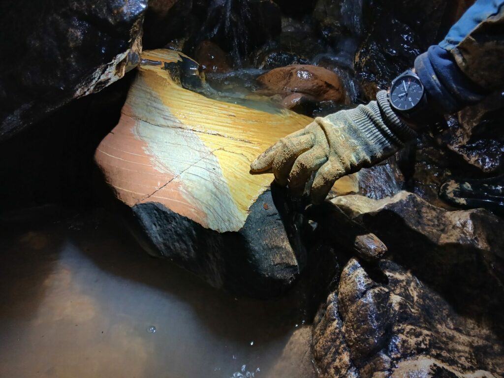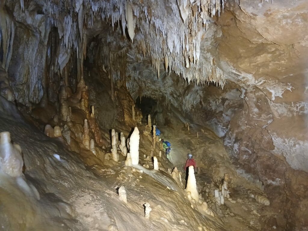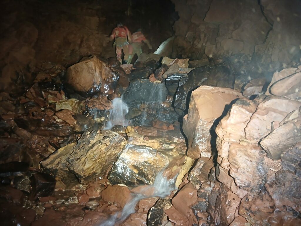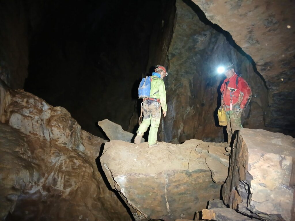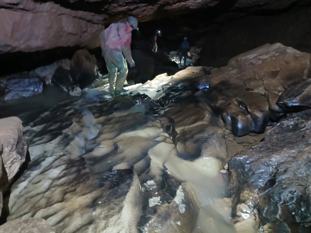 La cavité est connu des locaux, ils y ont fait des explos. Nous laissons dans un premier temps la rivière sur notre droite, nous allons dans le réseau fossile. Nous progressons sur les blocs, dans de beaux méandres….à la recherche de se nouveau réseau mais rien, nous ne trouvons pas « la suite ».