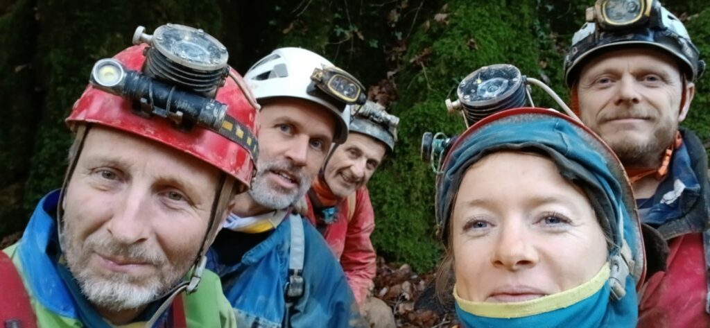 La cavité se trouve en plein bois à 964m d’altitude. Nous nous changeons rapidement, certains sont prévoyant et ont enfilé la sous combi à la maison !!